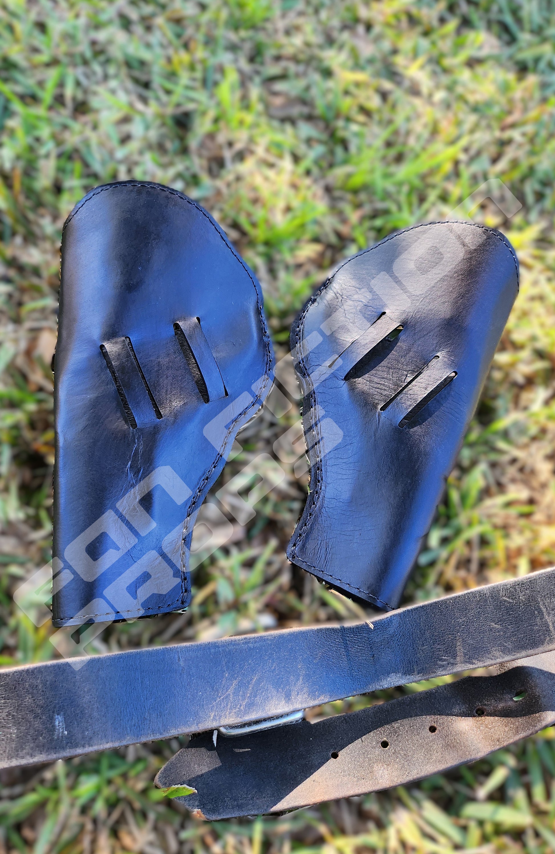 All pieces are 100% Leather and hand dyed and hand stitched together to ensure the utmost quality. You have the option of the Dual Holsters, or the Dual Holsters plus belt.
